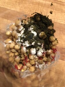Bland godt og kvern kikerter, tang/tare, chili, hvitløk, urter og brød.
