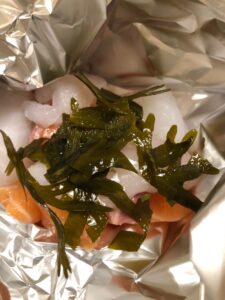 Kutt den ferske tangen i passe små biter og ha den på fisken