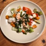 Kutt grønsakene i biter/skiver, og fordel over tangen