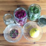Tørk og klipp nyperosebladene i små biter