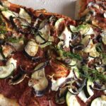 Dekorer pizzaen med rød pizzasaus, Parmesan, Fetaost, Sjampinjong, Squash og Rødløk. Pizzaen