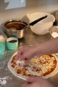 Kjøl ned før du smører sausen på pizabunn.