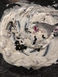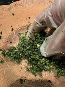 Tilsett hakket blæretang og løk Ha i sitronpepper